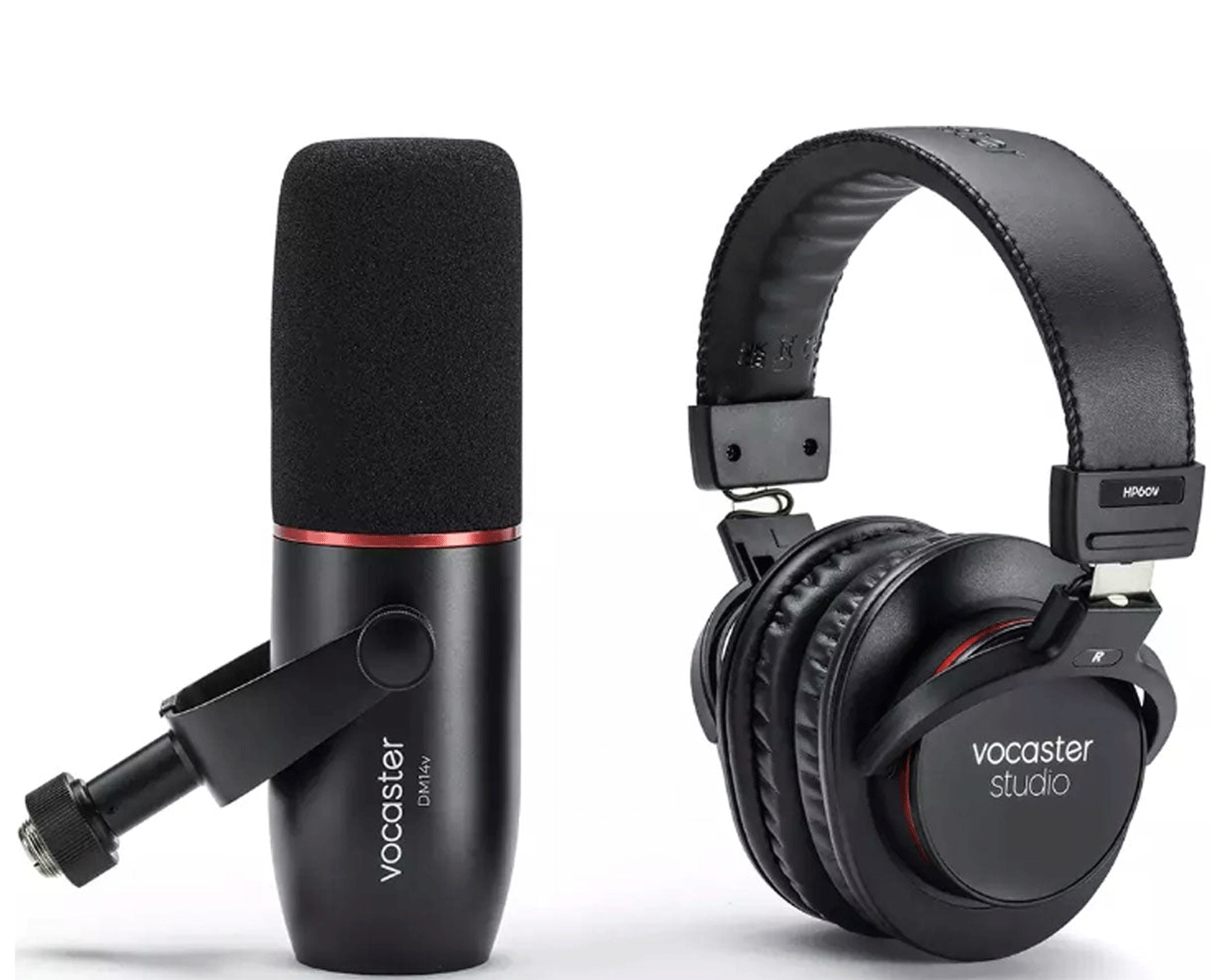 the Focusrite Vocaster-Broadcast Kit pairs Focusrite’s best dynamic mic with their most comfortable headphones to bring studio-quality sound to your setup. It features the Vocaster DM14v Microphone and the HP60V Headphones.
