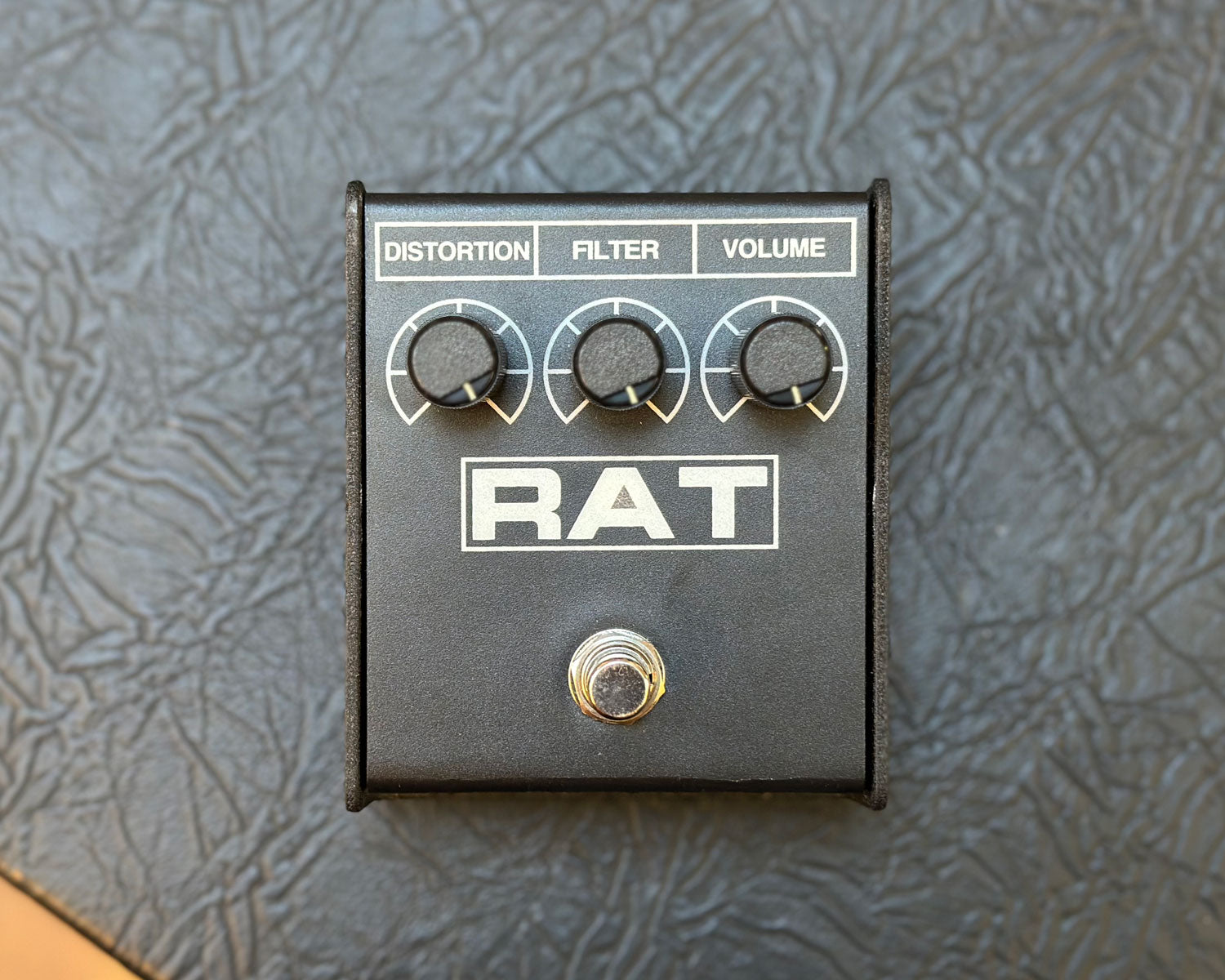 Classic hard clipping distortion box with Distortion, Filter, and Volume controls.