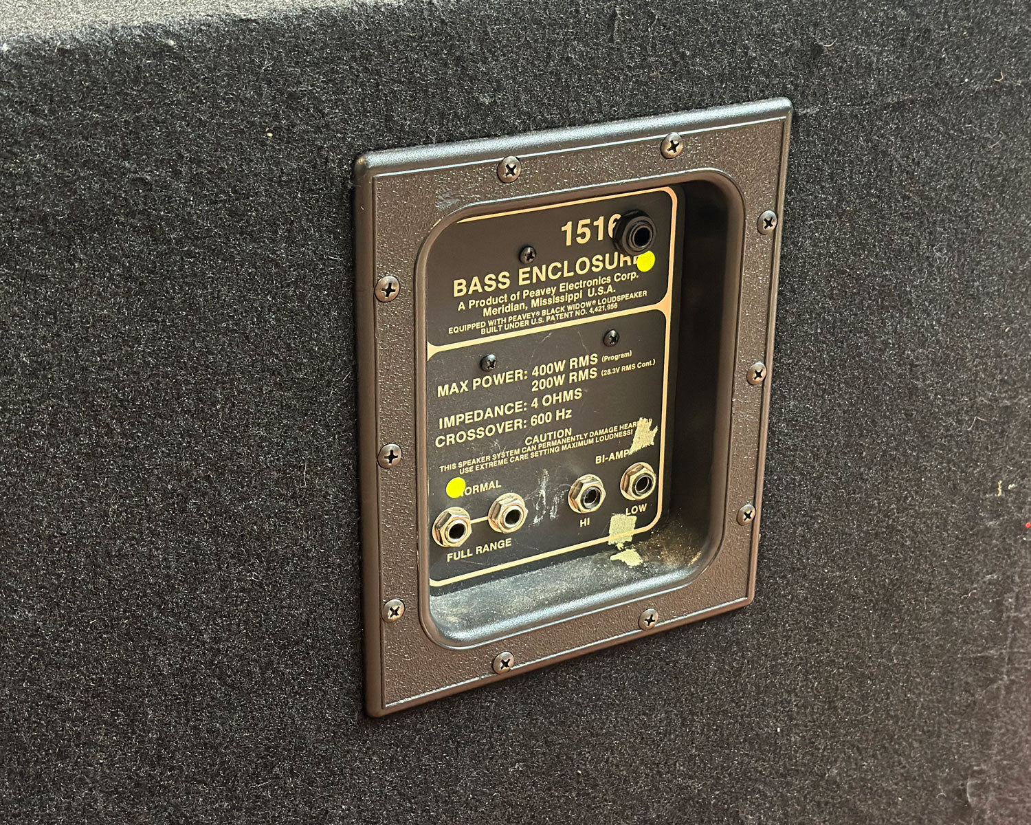 Rock solid peavey bass cab, these perform and last centuries. A hefty performer you can practically see the low end frequencies coming out of the cab.