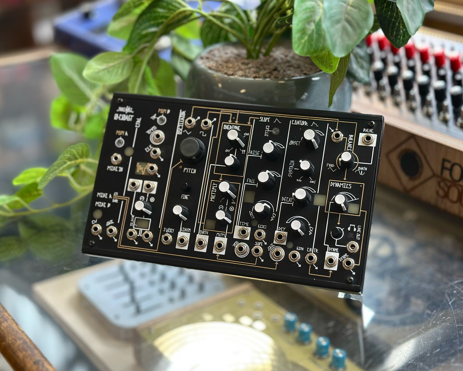 The 0-COAST is a single voice patchable synthesiser. Its name reflects the fact that it utilises techniques from both the Moog and Buchla paradigms (aka “East Coast,” and “West Coast,” due to their locations), but is loyal to neither and thus implements “no coast synthesis.”While the 0-COAST utilises classic modular synthesis techniques, we designed it to operate with or without the use of patch cables. The necessary connections have been made from circuit to circuit so it operates as an expressive, musical MonoSynth. Using only the MIDI controller of your choice you could apply new timbres to your existing musical forms.