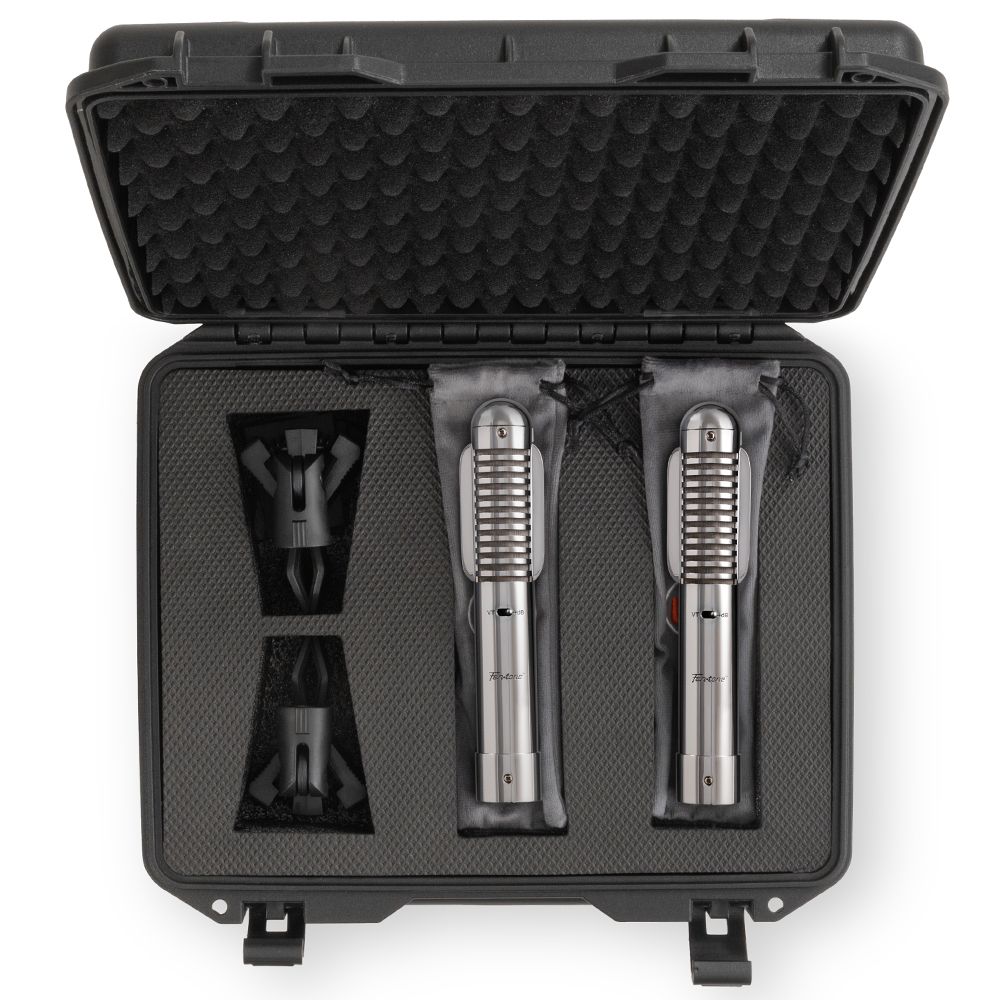 Includes heavy-duty flight case, two mic clips, two protective mic socks