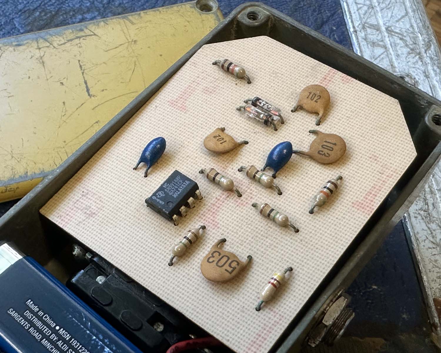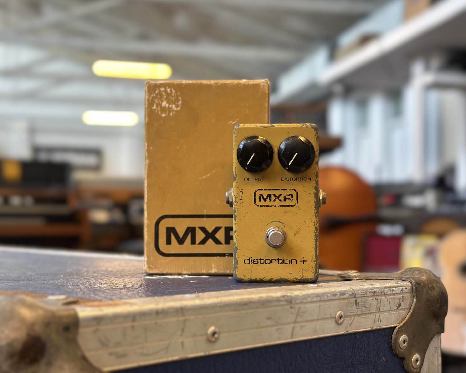 Vintage 1980 Distortion Plus. Contains the same UA741CP opamp as the previous script version used by Randy Rhoads. Made in USA.
